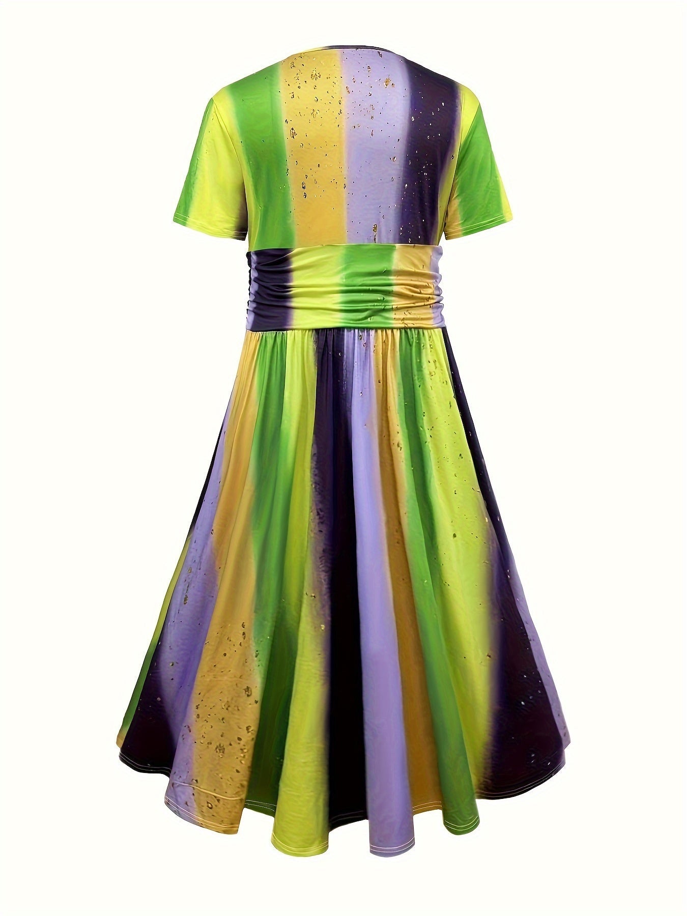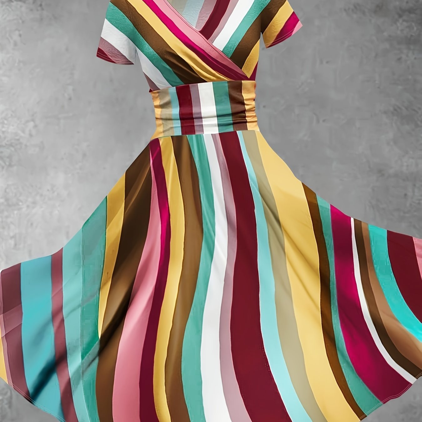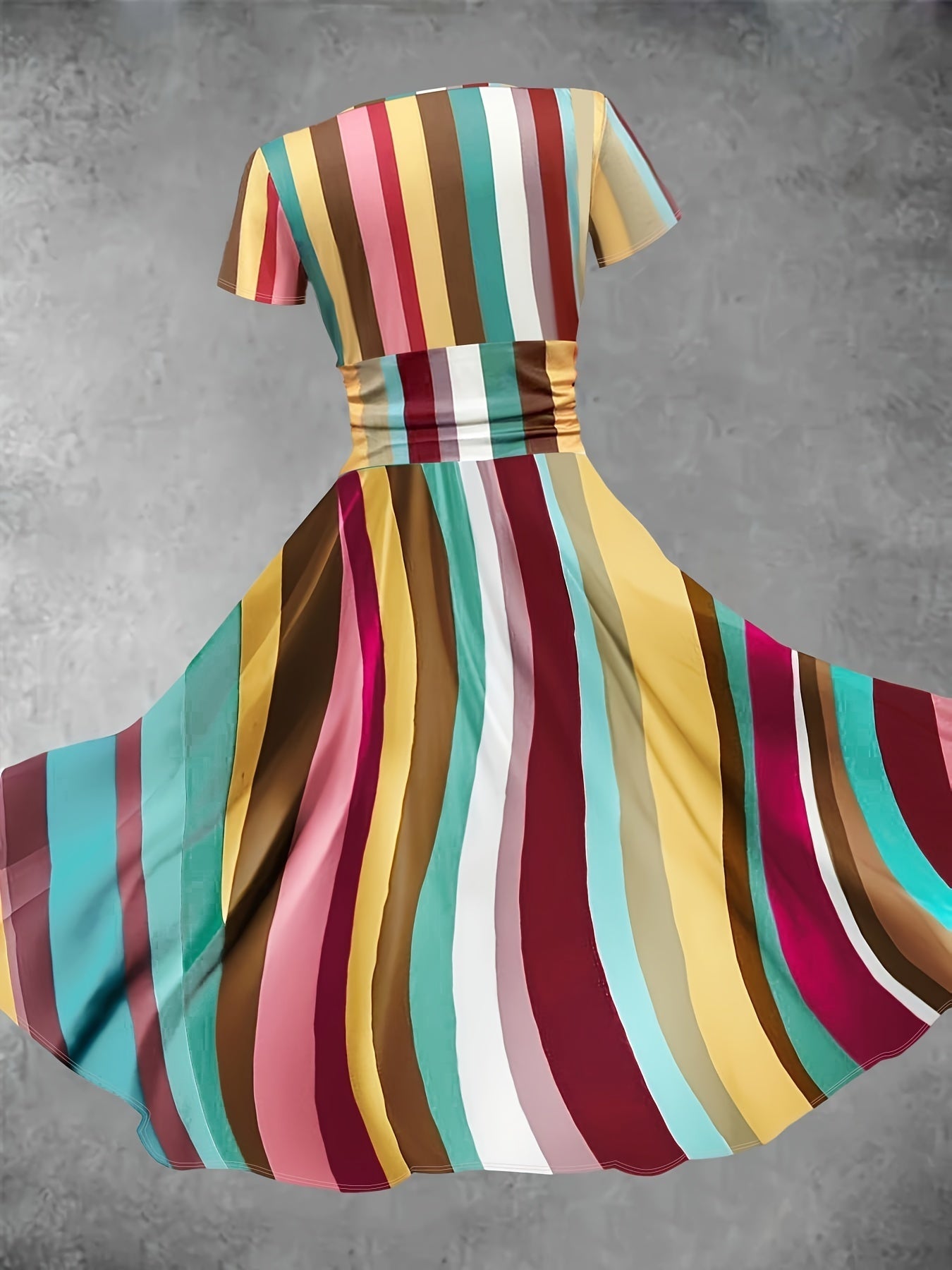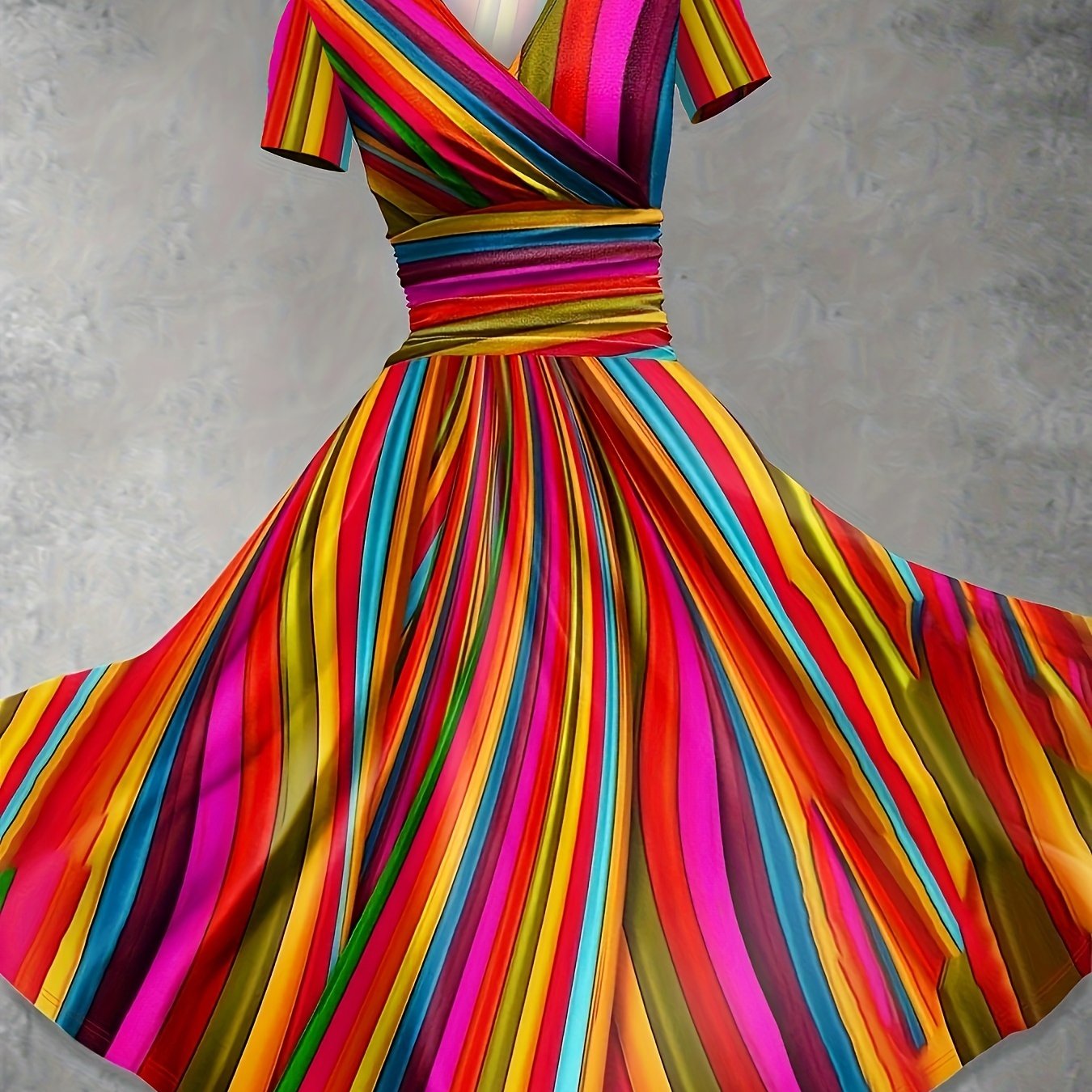 The Eve™ Colorblock Striped Dress is designed for women who love a flattering fit and modern design. With its bold striped print, V-neckline, and high-stretch fabric, this dress blends fashion-forward elegance with easy-going comfort. Whether you're heading out for brunch, enjoying a warm spring day, or dressing up for a casual gathering, Eve™ brings a touch of style to every step.