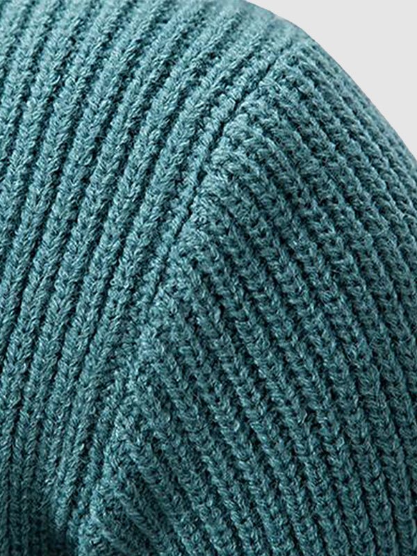 Close-up of the Men's Mock Neck Color Block Sweater highlighting ribbed knit texture.