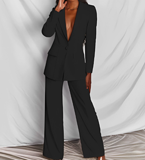 Flawlessly tailored, endlessly refined—the Veronica™ trousersuit redefines power dressing. Crafted with precise tailoring, its structured blazer and high-waisted trousers create a silhouette that is sleek, assertive, and undeniably feminine. Designed for women who lead with confidence and style, Veronica transitions seamlessly from day to evening, always leaving an impression.